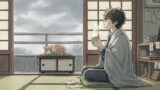 穏やかな光の中で静かに呼吸を整える人物。人との距離をやさしく測る瞑想のひととき。