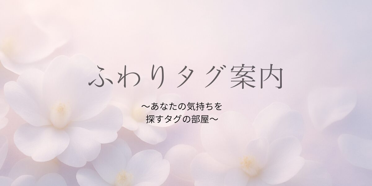 ふわりマーケットでは、日々の悩みや揺れる気持ちにそっと寄り添えるよう、すべての記事に「タグ」という小さな道しるべを添えています。